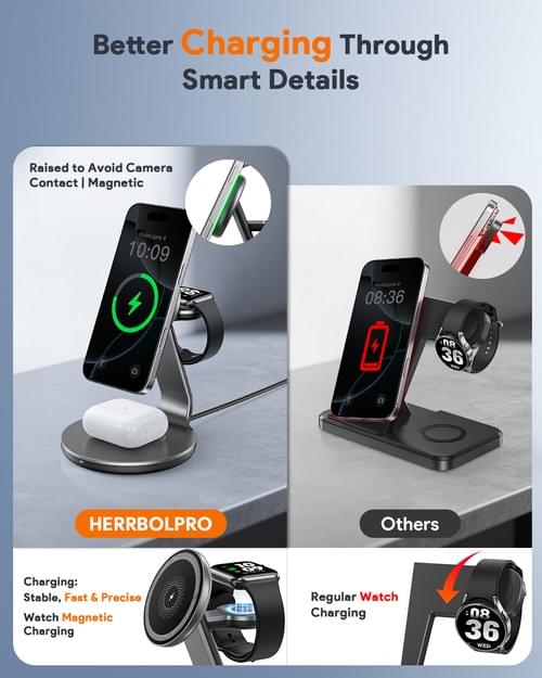 HERRBOLPRO 3 in 1 Charging Station for Apple Compatible with Magsafe Charger Stand for iPhone 16 15