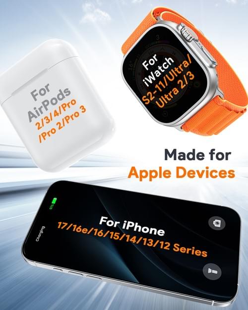 Designed for Apple Devices: 3 in 1 wireless charger can charge for iPhone,for iWatch and for AirPods. Please note that the magnetic wireless charger stand only supports for iPhone 16/15/14/13/12 series, the phone case only supports magnetic case or no case, suitable for iWatch10/9/8/7/6/5/4/3/2/SE/Ultra/Ultra 2, suitable for AirPods 2/3/4/Pro/Pro 2 (Note: For AirPods 2/3/4 have 2 versions, be sure to use the wireless charging case) Wireless charging station for Apple devices!